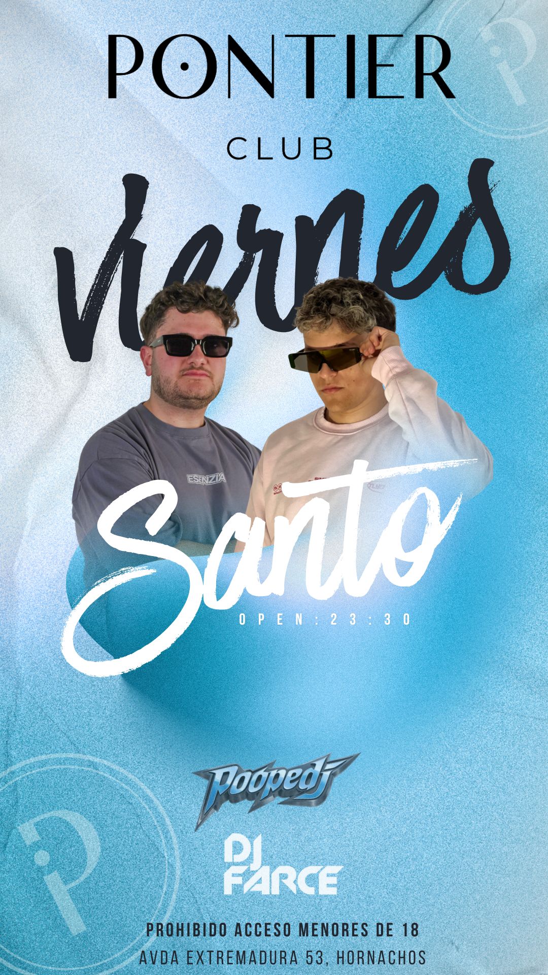 Viernes Santo con 2 Dj seguiremos con el ambientazo Pontier para disfrutar de la noche del Viernes 3 Abril 2026. Nuestro Dj Residente y uno de los nuevos dj de la zona que no pararan de haceros Bailar Apunta la fecha SANTO Viernes 3 Abril DESDE 23,00h a 7,00am