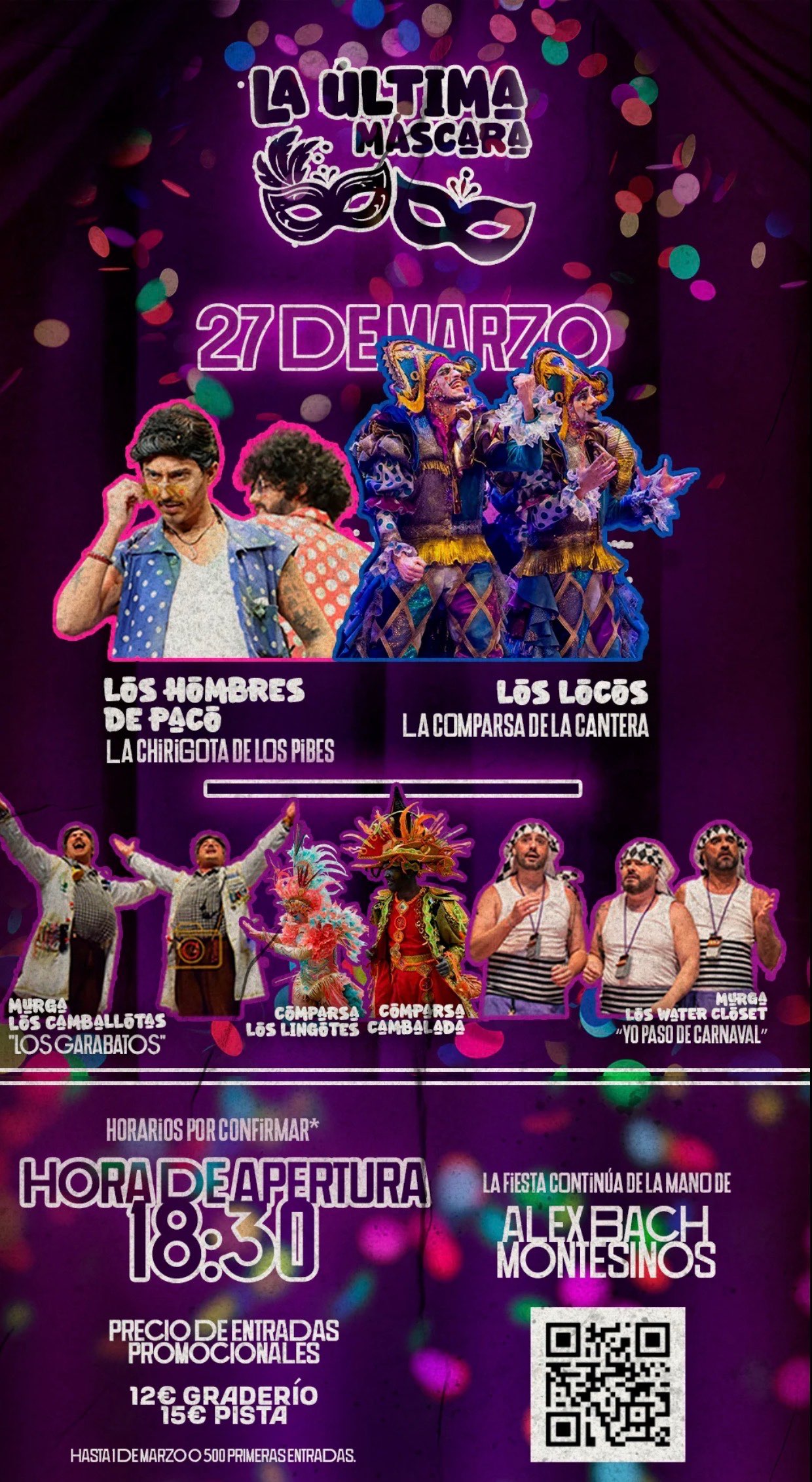 ‼️PLAZA DE TOROS‼️ Para los que no están dispuestos a esperar 365 días para volver a sentir el Carnaval… Este viernes 27 de marzo tienes una nueva oportunidad. Desde las 18:30, ven a disfrutar de una tarde cargada de ambiente, con todo tipo de agrupaciones y el mejor sabor a Carnaval. Música, coplas y buen rollo para seguir viviendo la fiesta como se merece. ¿Te lo vas a perder? *Horarios por confirmar.