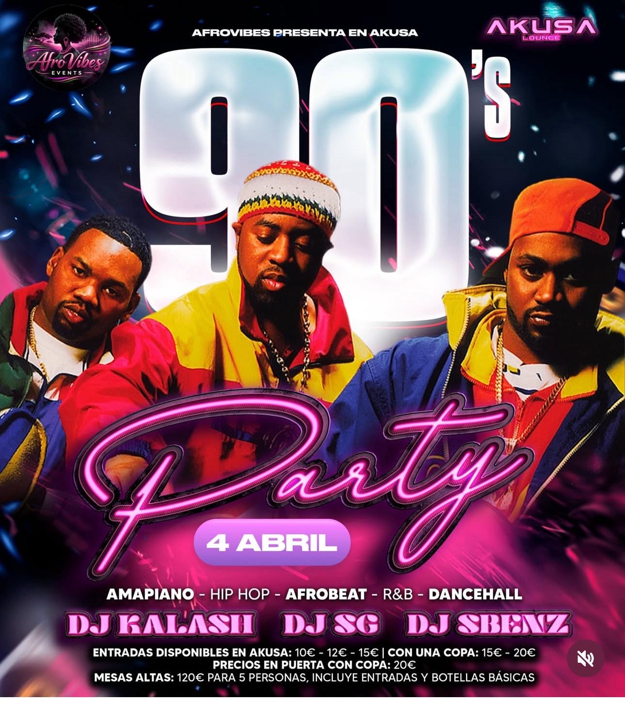Prepárate para una noche 90’s Party llena de pura vibra 🔊✨ 📅 4 de Abril 📍 Akusa Lounge Revive los mejores sonidos que marcaron una generación: 🎶 Amapiano | Hip Hop | Afrobeat | R&B | Dancehall En cabina: 🎧 DJ Kalash 🎧 DJ SG 🎧 DJ Sbenz La noche donde los 90’s vuelven a vivir 💿🔥 Ven con tu mejor outfit retro y prepárate para bailar toda la noche. 📍Av. de canarias, 334, 35110 vecindario, las palmas, Spain #90sParty #Afrovibes #AkusaLounge #Afrobeats #HipHopVibes #Amapiano #RNB #Dancehall #PartyNight
