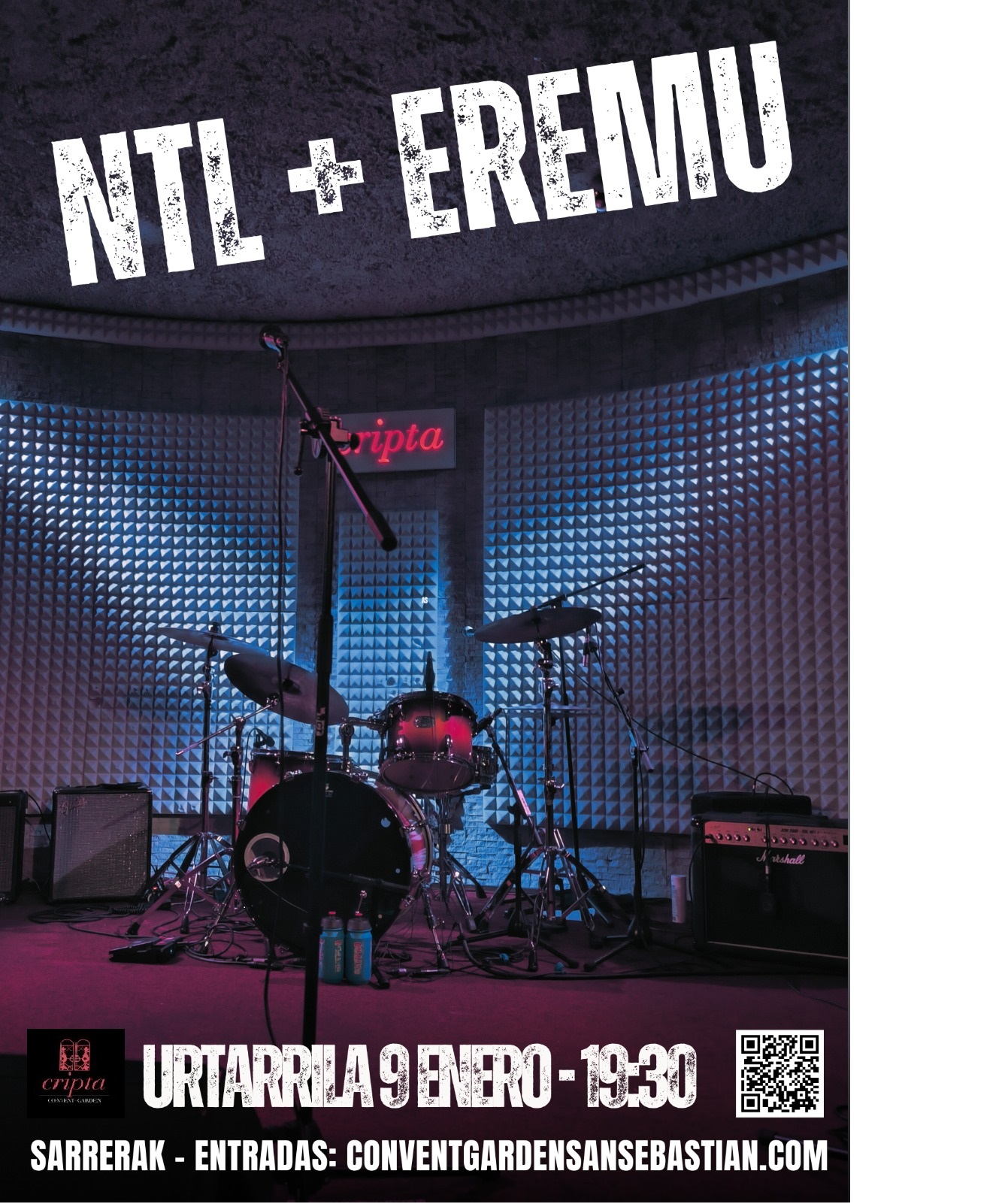 🔥 Urteko festa berriz ere orruka Donostian! 🔥 Eszenatokiak dardarka daude! La Criptako hormak berriz ere NTL eta Eremuk eskeiniko duten rock gau ahantzezin baterako prestatzen ari dira. Mundu bira arrakastatsuaren ondoren, bi taldeak indartsuago, zorrotzago eta dena leherrarazteko gogoz itzuliko dira. Riff suntsitzaileak, galgarik gabeko energia eta bi banda horiek bakarrik sor dezaketen giroa. Plan baten bila bazabiltza oilo-larrua jarri eta lehenengo akordetatik dardara eginarazteko, hau da ZURE kontzertua. 🎸 NTL + Eremu 📍 La Cripta, Donostia ✨ Gau bat, bi banda, helburu bakarra: ez utzi gozatzeari. Etzazula galdu! Hau izango da denek hitz egingo duten ekitaldia. Benetako Rock and Rolla. 🔥 ¡La fiesta del año vuelve a rugir en Donostia! 🔥 Los escenarios tiemblan y las paredes de La Cripta ya se preparan, porque NTL y Eremu regresan para desatar una noche de rock que promete quedarse grabada en la memoria de todos. Después de su apoteósico paso por la ciudad, ambas bandas vuelven más potentes, más afiladas y con ganas de hacerlo explotar todo. Riffs demoledores, energía sin freno y un ambiente que sólo estos dos nombres pueden crear. Si buscabas un plan que te ponga la piel de gallina y te haga vibrar desde el primer acorde, este es TU concierto. 🎸 NTL + Eremu 📍 La Cripta, Donostia ✨ Una noche, dos bandas, un solo objetivo: que no pares de vibrar. ¡No te lo pierdas! Este será el evento del que todos hablarán. Rock en estado puro.