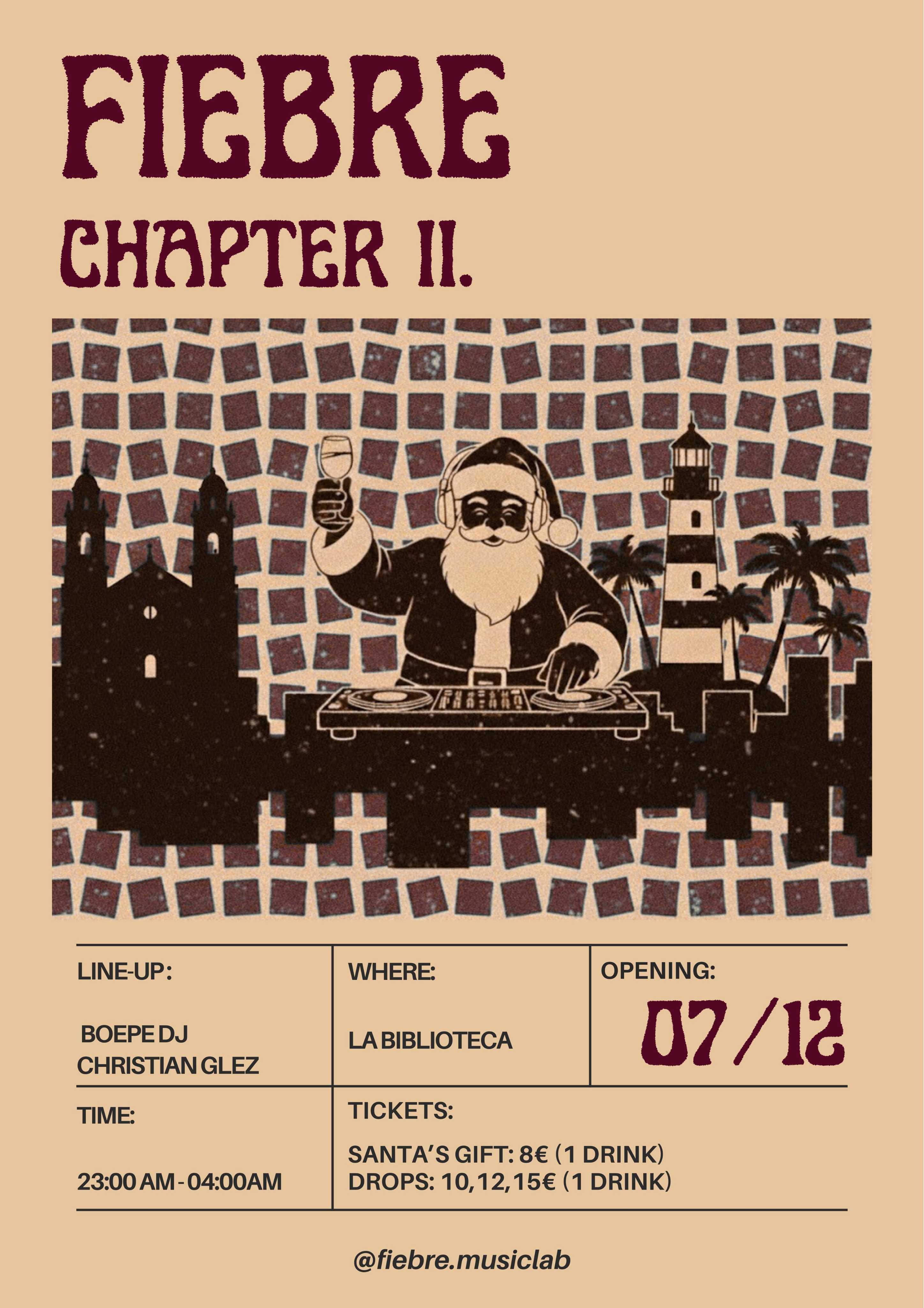 FIEBRE – CHAPTER II (DECEMBER TO REMEMBER) DOMINGO 07/12 23:00–04:00 DESPUÉS DE UNA GRAN BIENVENIDA EN LA PRIMERA REUNIÓN, ESTAMOS DE VUELTA. LOS DOMINGOS CON BUENA MÚSICA Y UN AMBIENTE EXCELENTE HAN LLEGADO. HAZ QUE ESTE ÚLTIMO MES SEA INOLVIDABLE CON NOSOTROS.