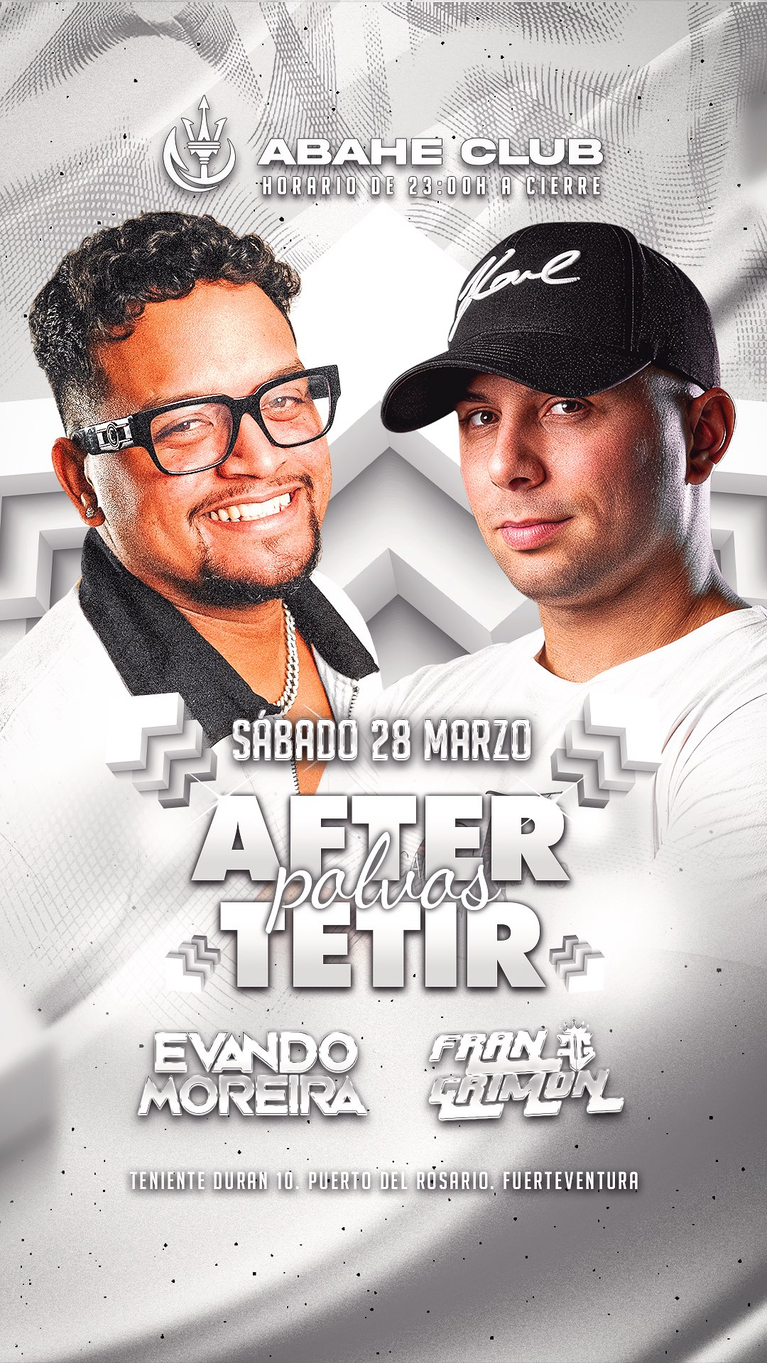 ✨🔥 AFTER POLVOS DE TETIR ⬜️ 🚀 Prepárate para una noche épica de música, locura y buen ambiente. ⚪ Dress code: Blanco (No obligatorio) 🥃 Chupito gratis para los primeros en llegar.