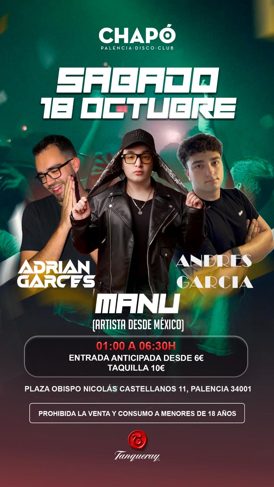 El Sábado 18 DE OCTUBRE te espera una noche única de Fieston que volvemos a traer a otro dj Internacional desde Mexico MANU NAVARRO 🇲🇽 junto con los djs locales Andres Garcia & Adrián Garcés 🎧. ¡Mucho show, animación, sorpresas y más! ¿Qué mejor manera de acabar el finde semana? 🥳🎧